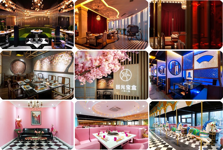 越光宝盒·火锅小咖首店定址重庆,以“穿越”回民国年代为店面主题,怀着一种“追根溯源”的情结。重庆之后的每一家店,也都有不同的“穿越”主题,结合所在城市的文化底蕴和地域特色,将火锅品牌融入到城市的历史、文化和精神中去,既有城市的内涵,又有自己的特色。做到一城一味,一味一城!如南京夫子庙店是古色古香的韩国风,新街口店是粉嫩梦幻的少女风,总之,都是别具一格,颠覆了传统火锅就餐的嘈杂环境。