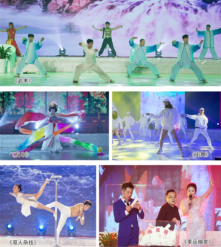 精致唯美的舞台、绚烂多彩的灯光。由专业演员带来的各个精彩节目轮番上演、魅力尽显。既有歌曲串烧嗨翻全场、也有魔术表演扣人心弦、更有动感舞蹈点燃气氛……在晚宴环节,全国瑞源家人举杯畅饮、共话今朝。随着晚会的进行,电饭煲、冰箱、平板电脑、超大屏液晶电视等众多幸运大奖也一一送出,更有很多幸运者赢得双重大奖!现场惊喜连连,高潮迭起,全场瑞源家人沉浸于欢乐、喜悦的海洋,在觥筹交错间畅想未来,铭记今宵。
